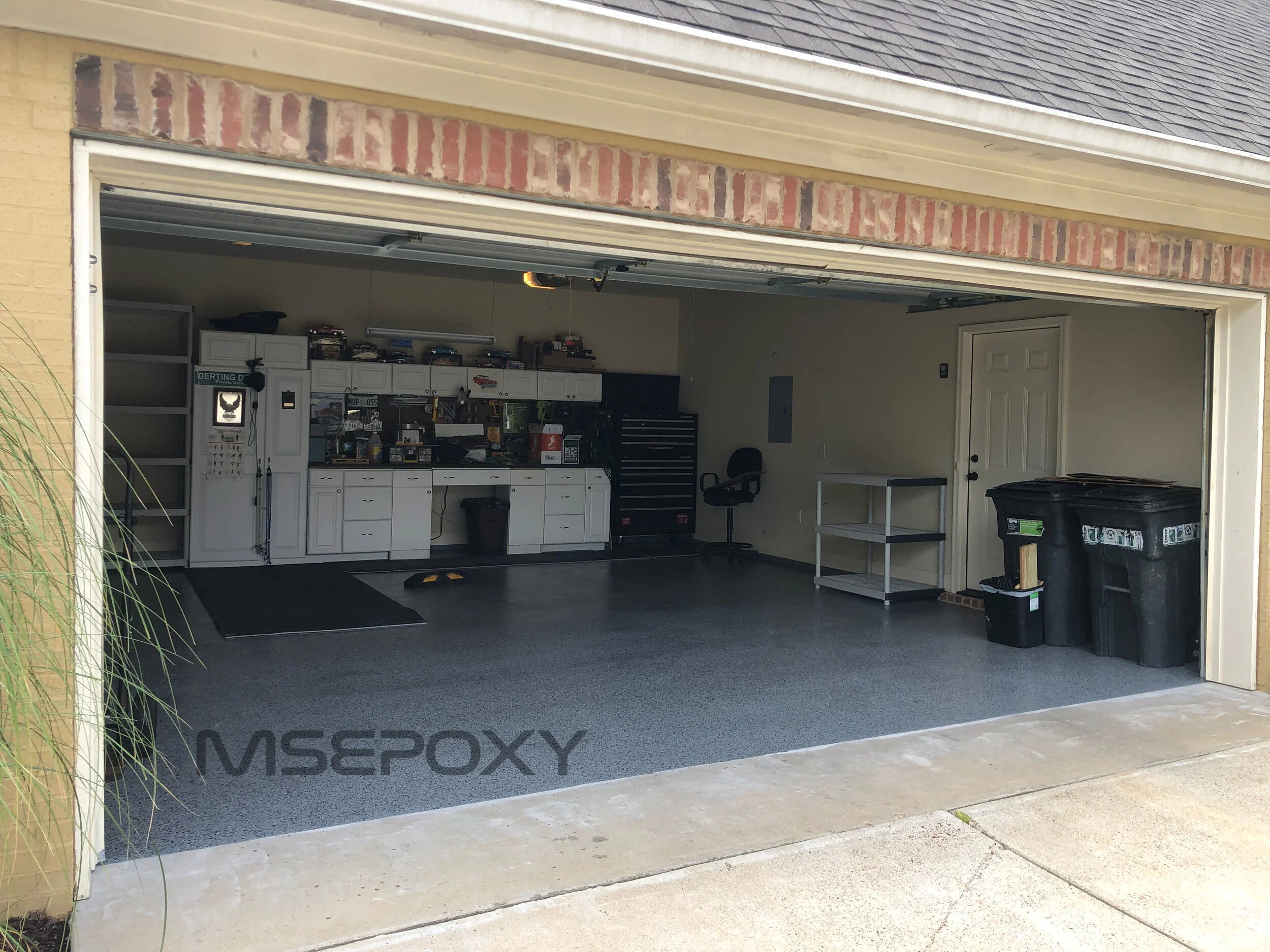 Today we installed our one day garage flooring in a two car garage in Ridgeland MS. When you think about garage flake flooring you may think of epoxy or epoxy flooring. While epoxy has its place in industrial applications, metallic floors and commercial kitchens. It really shouldn’t be used in an outdoor environment due to its lack of UV stability. We only use polyuria for our outdoor/garage applications because it’s complexity UV stable and comes with a lifetime warranty. Flake garage flooring can increase the value of your home, make it much easier to clean your garage and add tremendous wow factor as well.